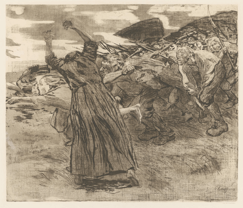 Detalle de Losbruch, de Käthe Kollwitz. Hoja 5 del ciclo Der Bauernkrieg (grabado, 1902/3). Fuente: www.kollwitz.de