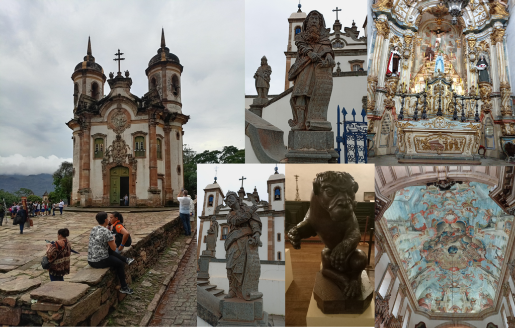 Entre los artistas de ese barroco colonial, destaca Antonio Francisco Lisboa, conocido como Aleijadinho (“el Lisiadito”, en portugués). Era hijo de Manuel Francisco Lisboa, un maestro de obras portugués, y de una mujer esclava llamada Isabel. Su sobrenombre fue porque padeció una enfermedad degenerativa, no se sabe bien si lepra, sífilis u otra patología, que deformó sus manos, por lo cual, para poder seguir trabajando, tenían que atarles las herramientas a sus manos. Sus obras (ver imágenes más abajo) se encuentran en las ciudades de Ouro Preto, Congonhas, São João del-Rei y Sabará, ciudades que en general no fueron afectadas por lo que algún tango llamó, a principios del siglo XX en Uruguay, “la piqueta fatal del progreso”. Aleijadinho fue escultor, arquitecto y tallador. Su nombre, su arte, su espíritu, poniéndonos un poco hegelianos, se encuentran omnipresentes en la zona. Y hay algo en él también de la dialéctica del amo y el esclavo de Hegel, aunque no fuera esclavo, sino hijo de una mujer reducida a la esclavitud, porque demuestra en su arte su plena humanidad, su libertad, el ser un sujeto con una capacidad creativa extraordinaria (para algunos, el artista más importante no solo del Barroco brasileño, sino de la historia toda del Brasil) como otros grandes artistas de la historia, todo lo que era precisamente negado por la ideología del esclavismo, que también despreciaba fuertemente a los «mulatos» o «pardos».